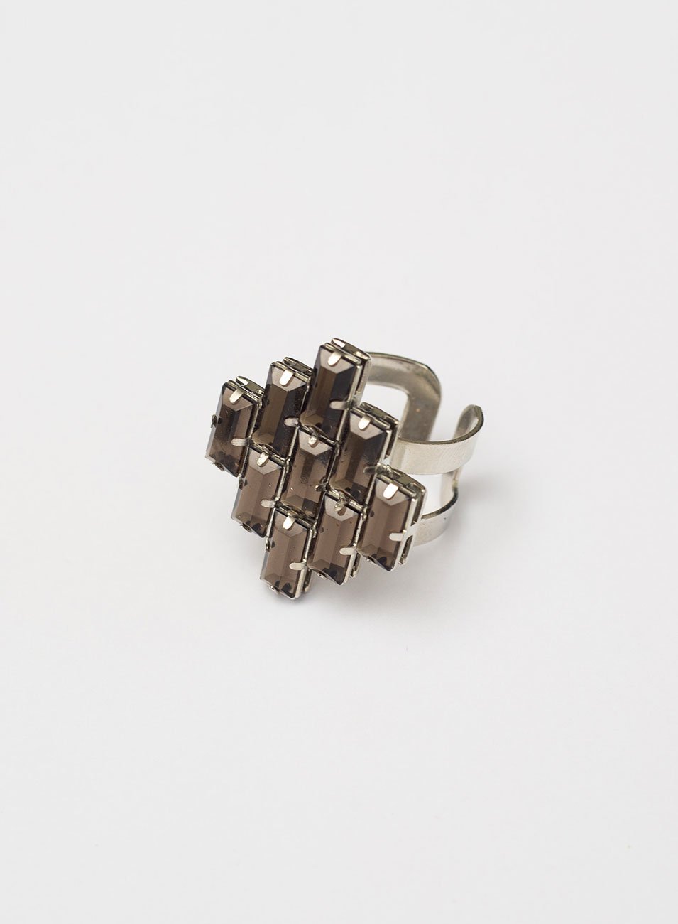 O Anel Amélia é a definição de elegância contemporânea. Seu design clean e sofisticado destaca uma cravação de cristais baguete pretos, que criam um contraste marcante e refinado com o brilho do banho em ródio branco.