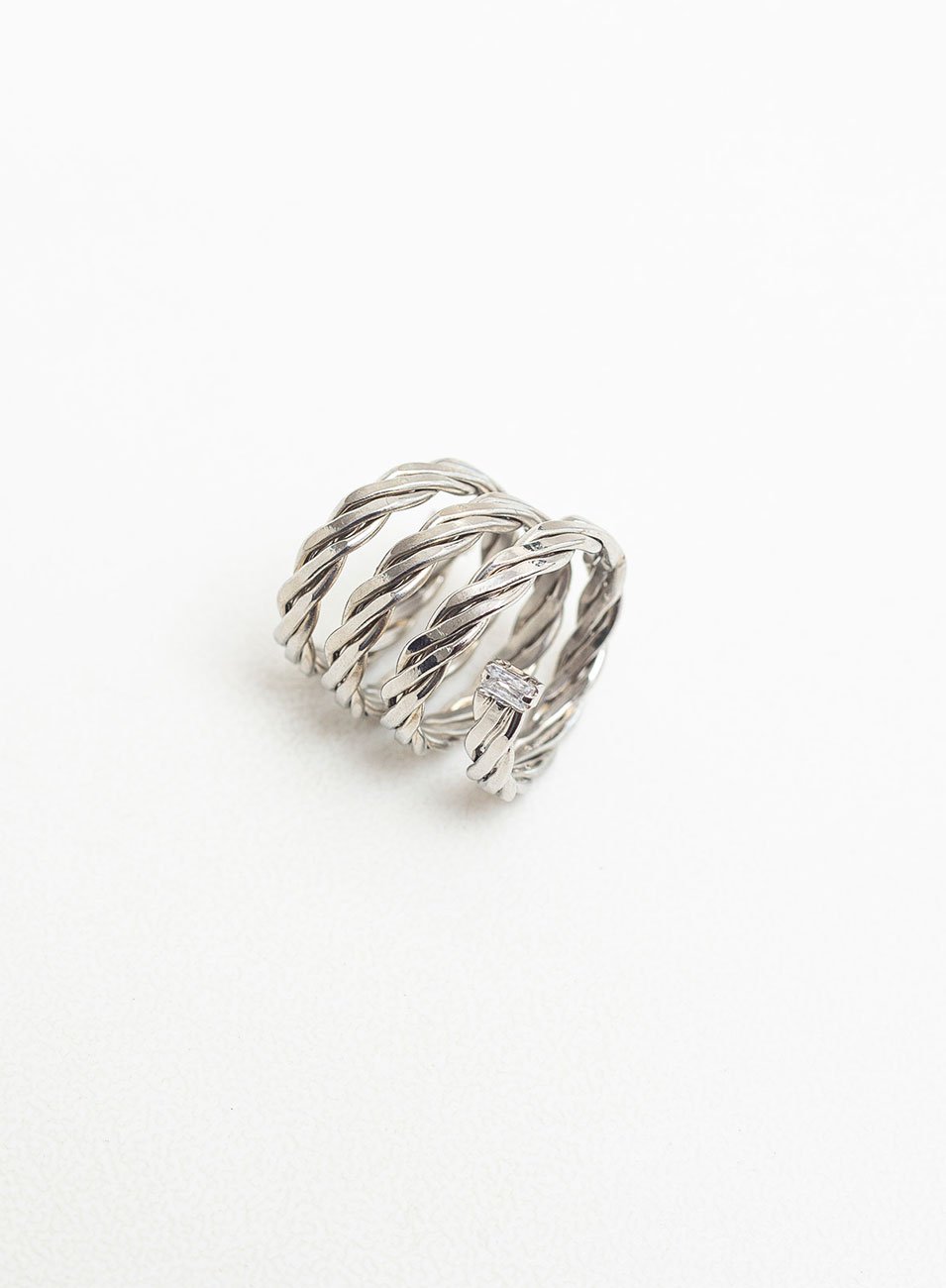 ANEL ARO TRANÇADO ZIRCÔNIA BANHO RÓDIO BRANCO