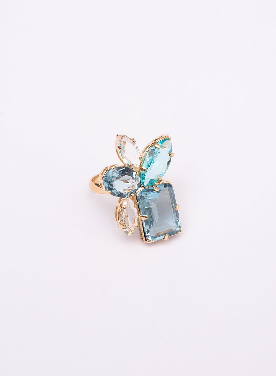 Anel Celeste Mix Cristais Azuis | Banho de Ouro