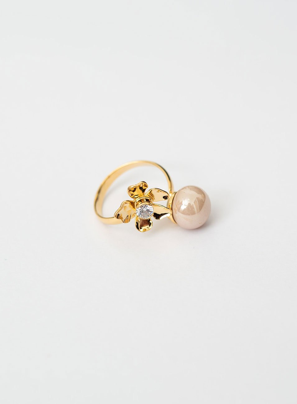 ANEL ESSÊNCIA FLOR ZIRCÔNIA PÉROLA SHELL BEGE BANHO OURO