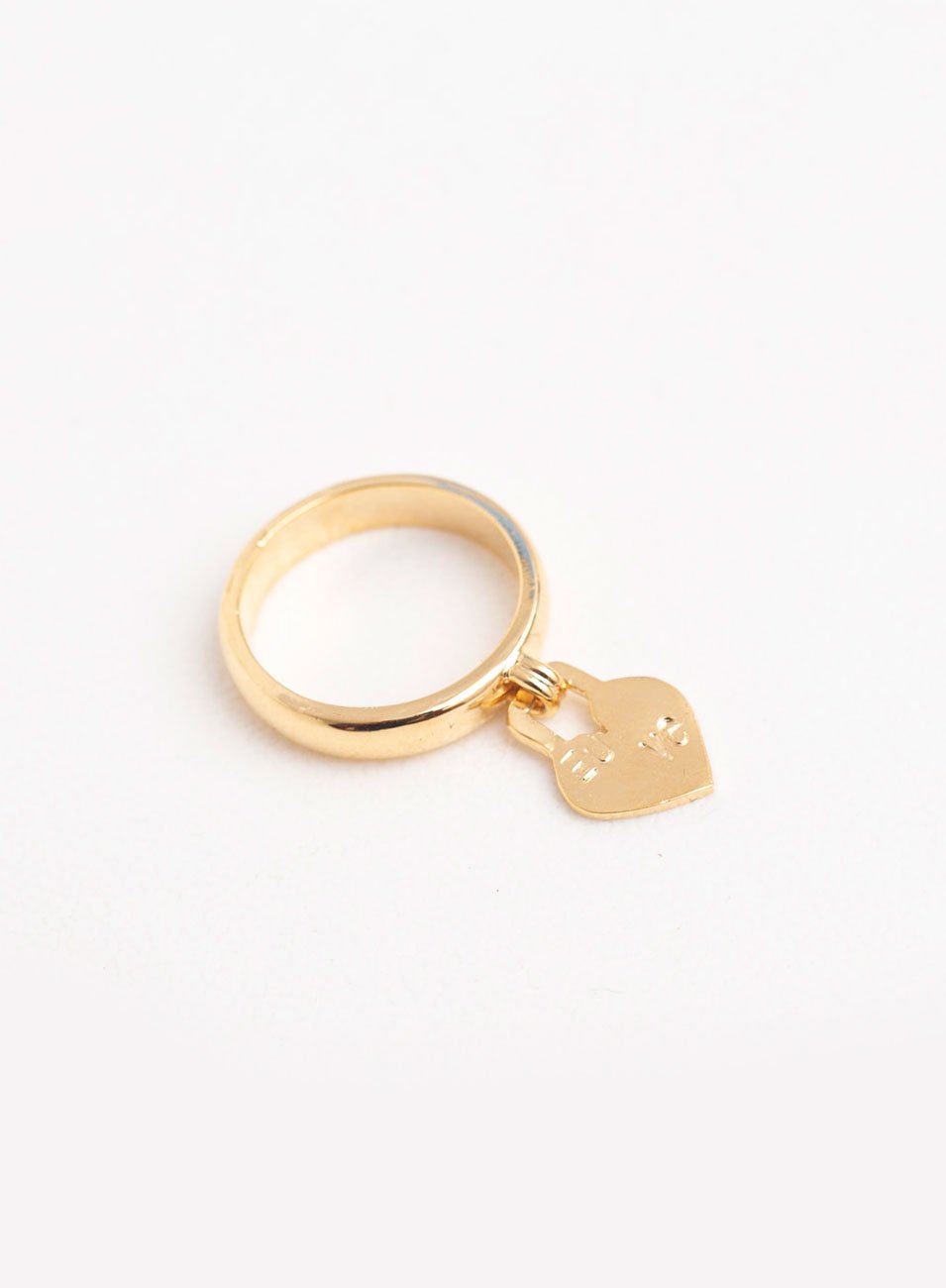 Anel feito em prata, sob encomenda, com pingente de coração personalizado e iniciais. Banho ouro.