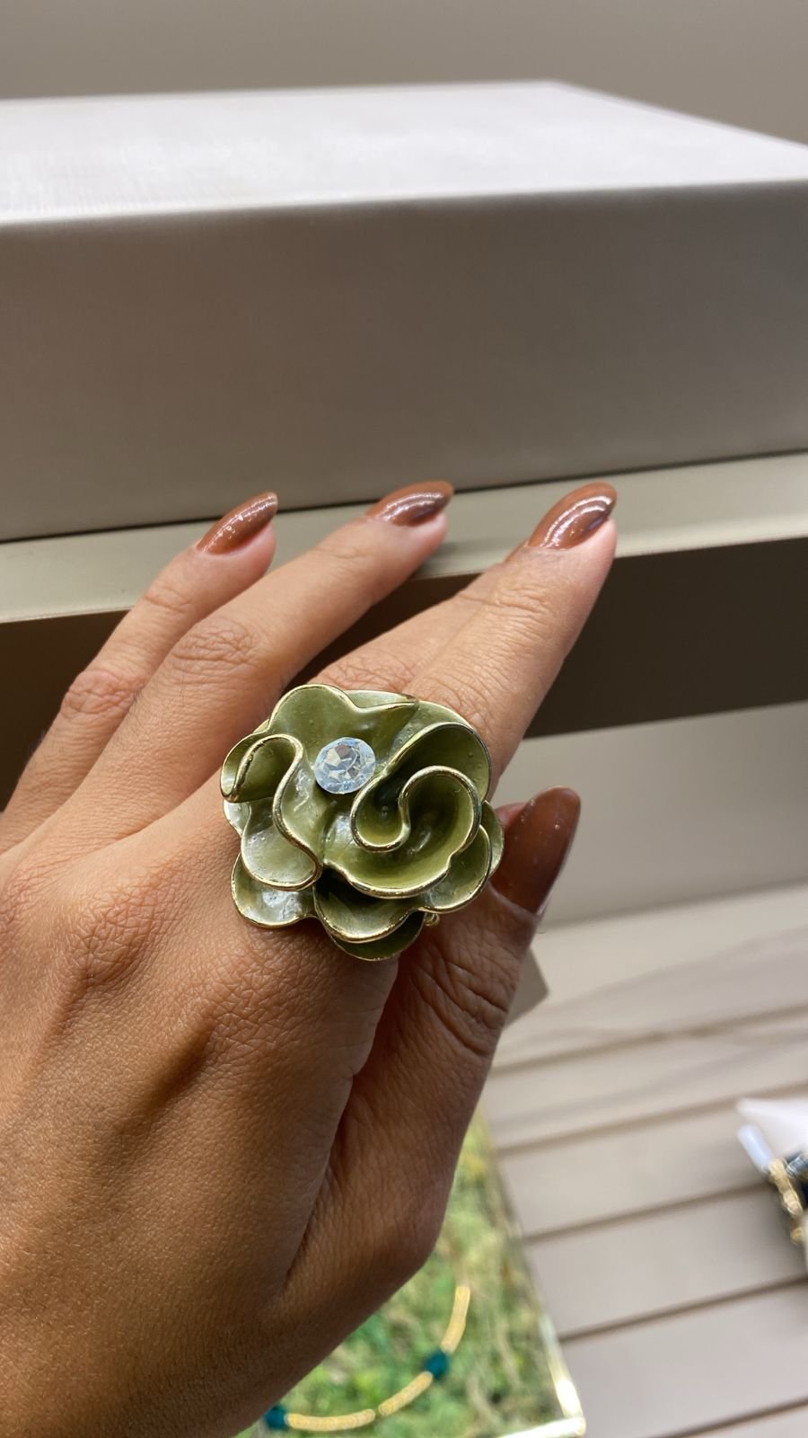 ANEL FLOR ESMALTADA VERDE OLIVA : 17341 / : 0g Facebook X Pinterest WhatsApp : - + : OK × : 1x R$ 28,11 : R$ 28,11 ×