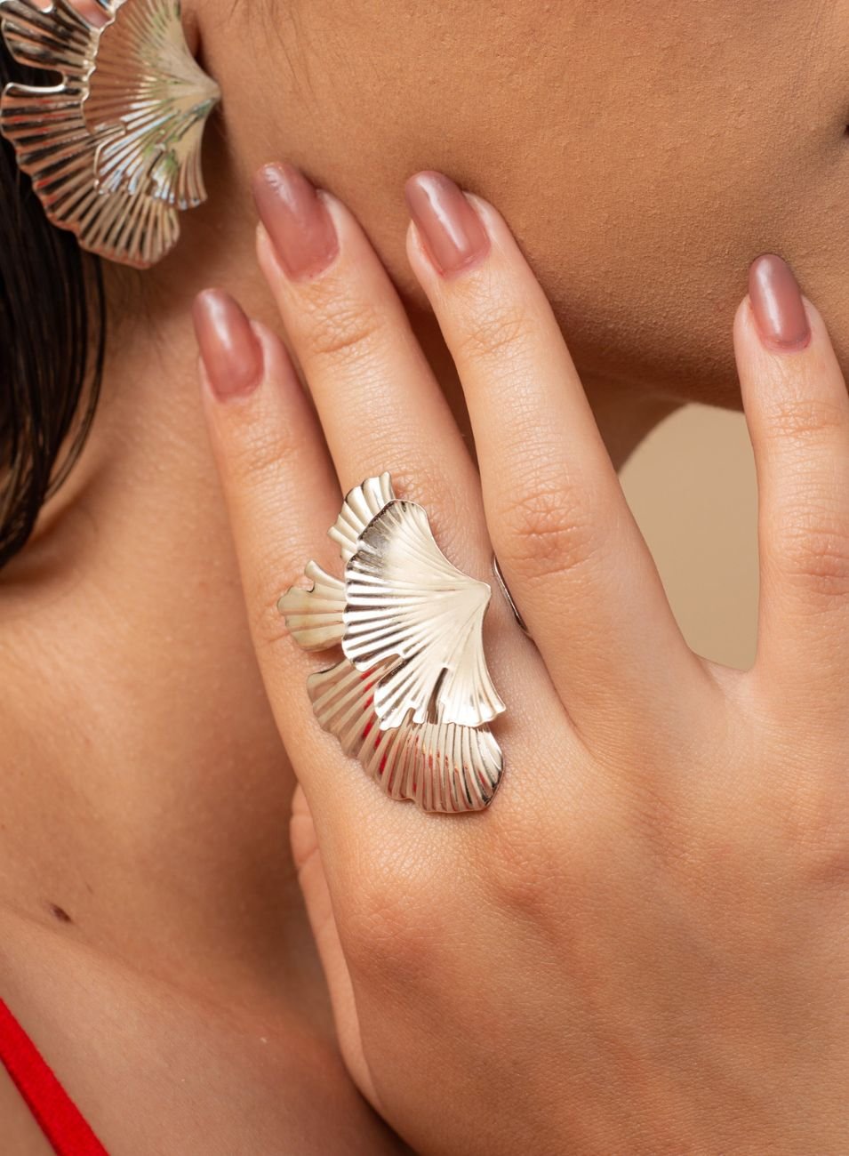 O Anel Leque Duplo Ginkgo Banho Ródio Branco é uma semijoia autoral Lulu Souto que combina elegância contemporânea e acabamento refinado. Seu design valoriza as mãos com delicadeza e personalidade, criando uma peça versátil para o dia a dia ou ocasiões especiais. Produzido em metal nobre com banho de ródio branco, o anel apresenta excelente acabamento e durabilidade.