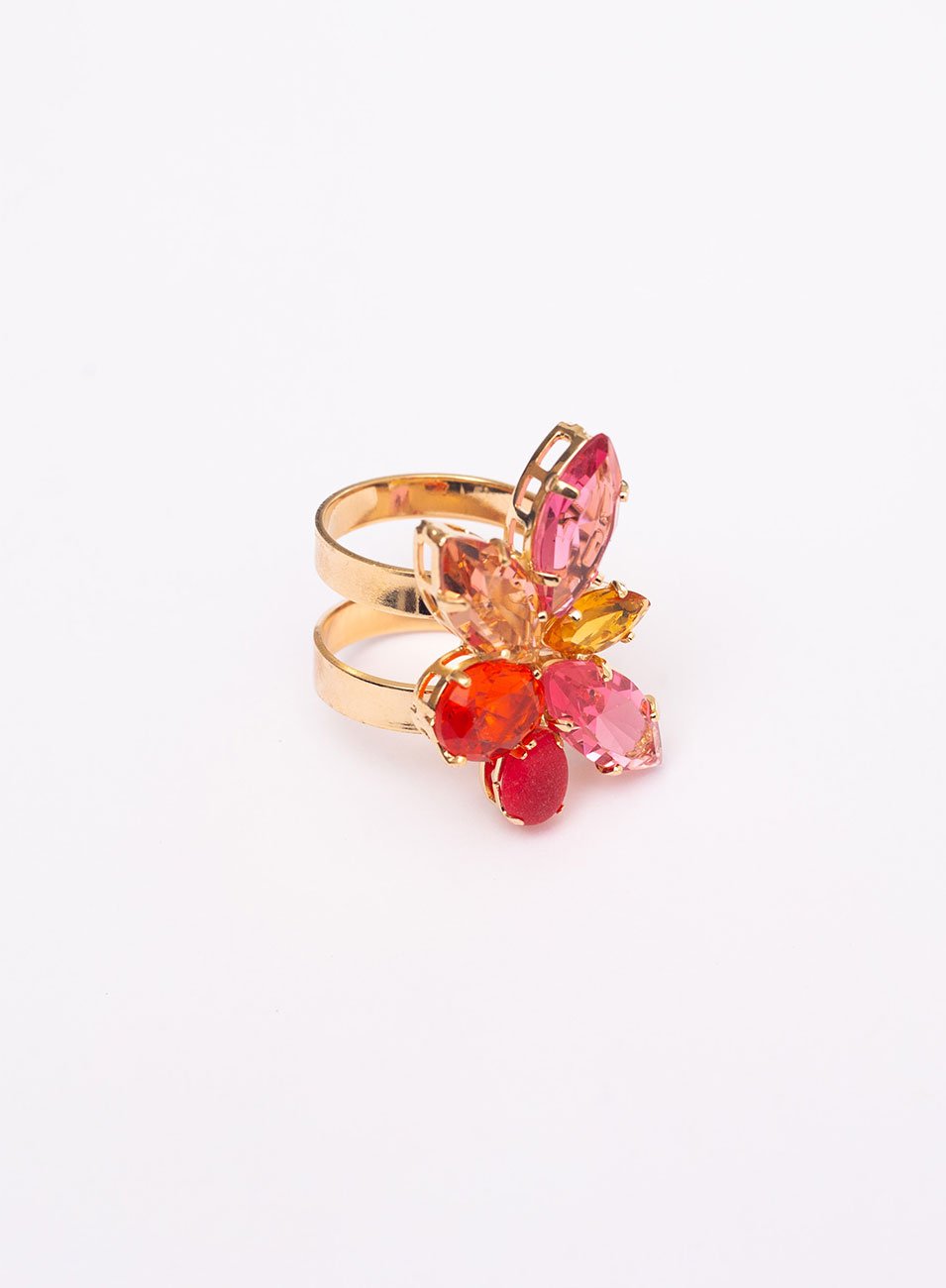 ANEL MAGNOLIA MIX CRISTAIS ROSA COM BANHO OURO