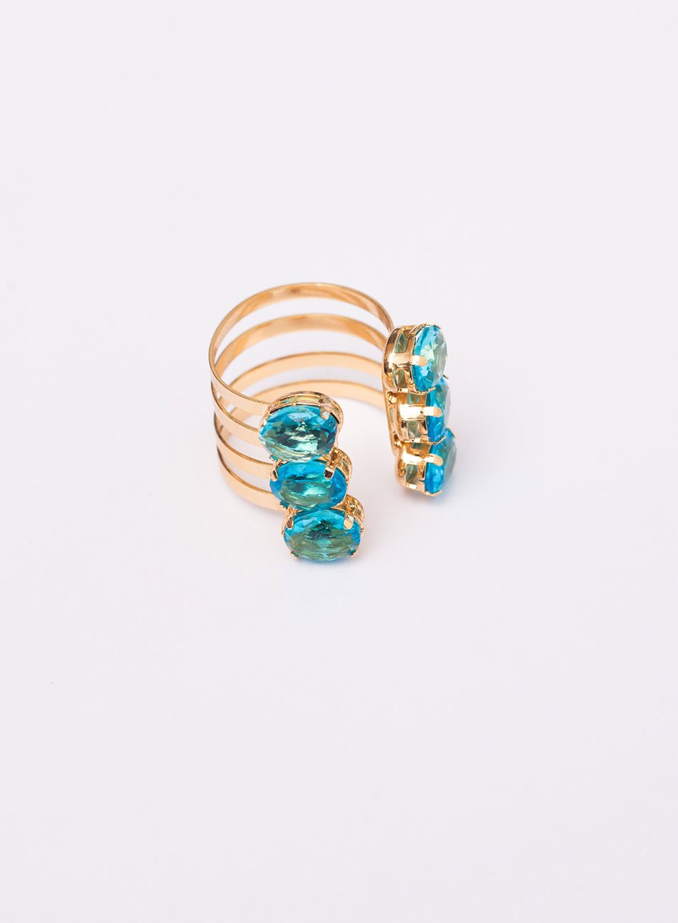 ANEL MIDI CRISTAL AZUL COM BANHO OURO