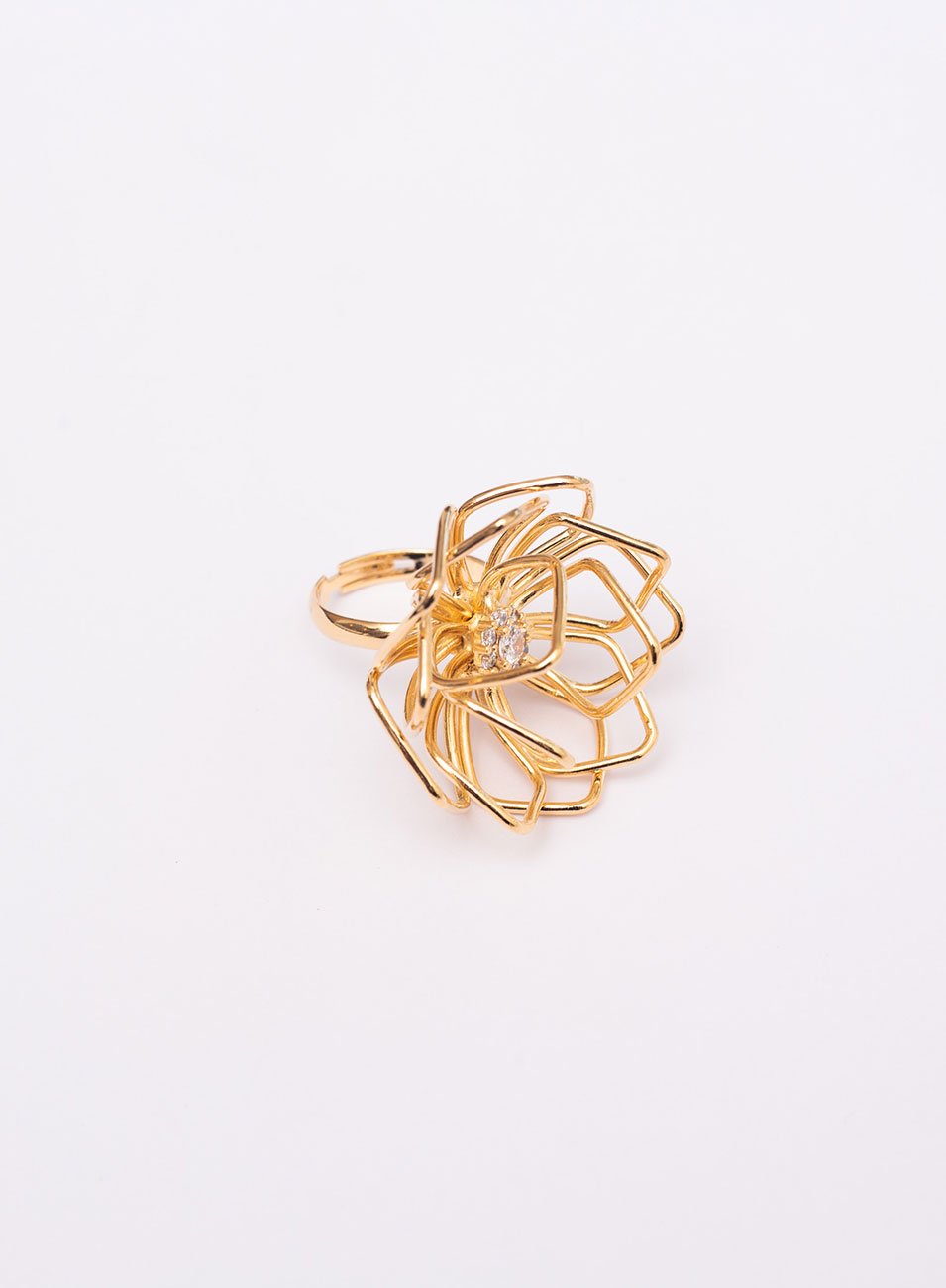 Anel Petalina Flor de Lótus 3D Zircônia | Banho de Ouro