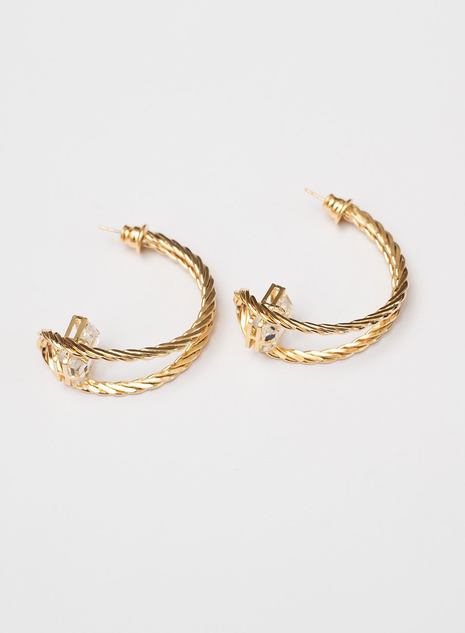 A Argola Raiz é sinônimo de modernidade e sofisticação. Produzida em metal nobre com banho de ouro, apresenta um delicado trançado que transmite movimento e elegância, realçado pelo brilho suave do cristal de vidro morganita.