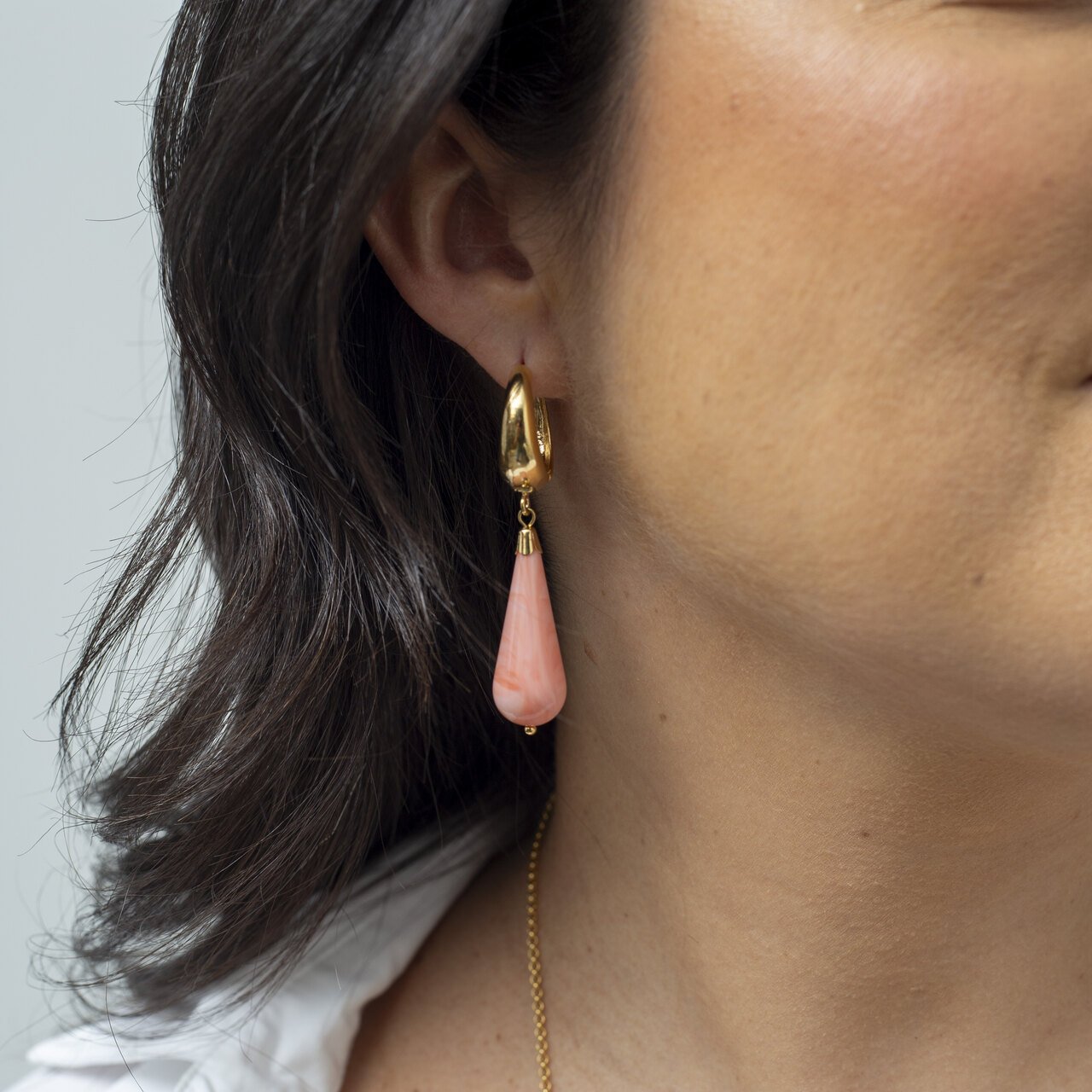 Os Brincos Anastasia são uma escolha vibrante e moderna, perfeitos para quem deseja adicionar um toque de cor ao seu look. Com uma base em argola, estes brincos são decorados com aplicações de resina em formato de gota longa, na cor coral, que trazem um efeito elegante e contemporâneo. O banho em ouro adiciona um brilho luxuoso, complementando a beleza da resina e tornando esta peça ideal para diversas ocasiões.