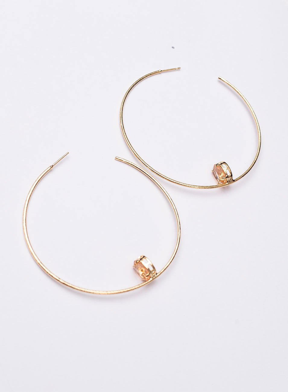 Com aro fino e alongado de 8 cm, a peça cria um desenho leve e elegante que acompanha o movimento do corpo com naturalidade. O destaque está no detalhe central: o cristal oval na cor rosa morganita, suave e luminoso, que surge como um ponto de luz sutil — o grão.