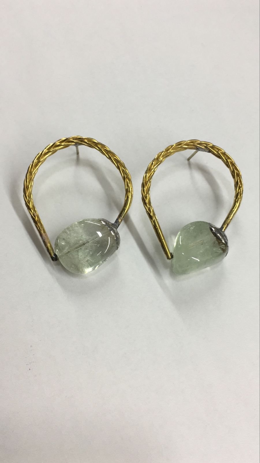 ARGOLAS SHERON PEDRA NATURAL QUARTZO VERDE BANHO OURO