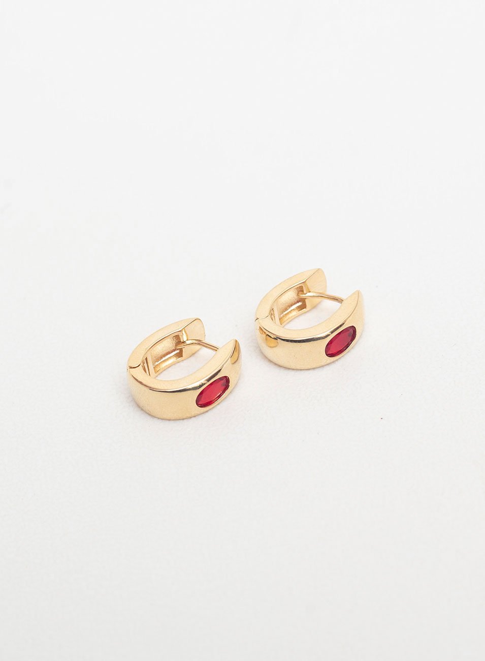 As Argolinhas Iris Vermelho com banho de ouro trazem sofisticação e elegância em um design minimalista. Feitas de metal nobre, essas pequenas e grossas argolas possuem um cristal oval vermelho acoplado à base, proporcionando um toque vibrante e único. O banho de ouro adiciona um acabamento luxuoso, tornando estas argolinhas perfeitas para qualquer ocasião, seja para o dia a dia ou para eventos especiais.