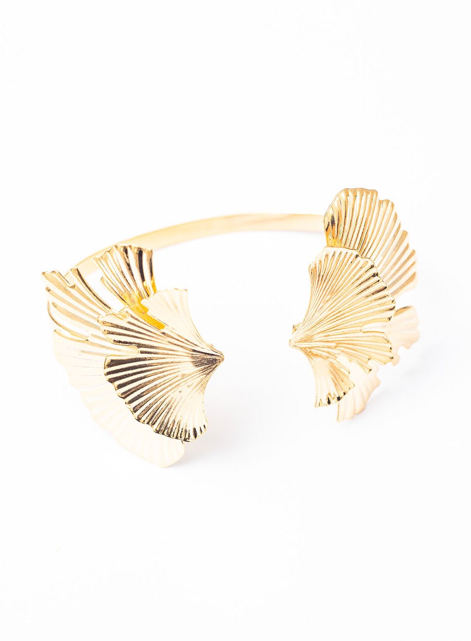 O Bracelete Leque Ginkgo é uma joia escultural inspirada nas folhas da árvore Ginkgo Biloba, símbolo de longevidade, força e renovação. Seu desenho em formato de leque traz textura orgânica e nervuras marcadas, criando um jogo de luz sofisticado e contemporâneo.