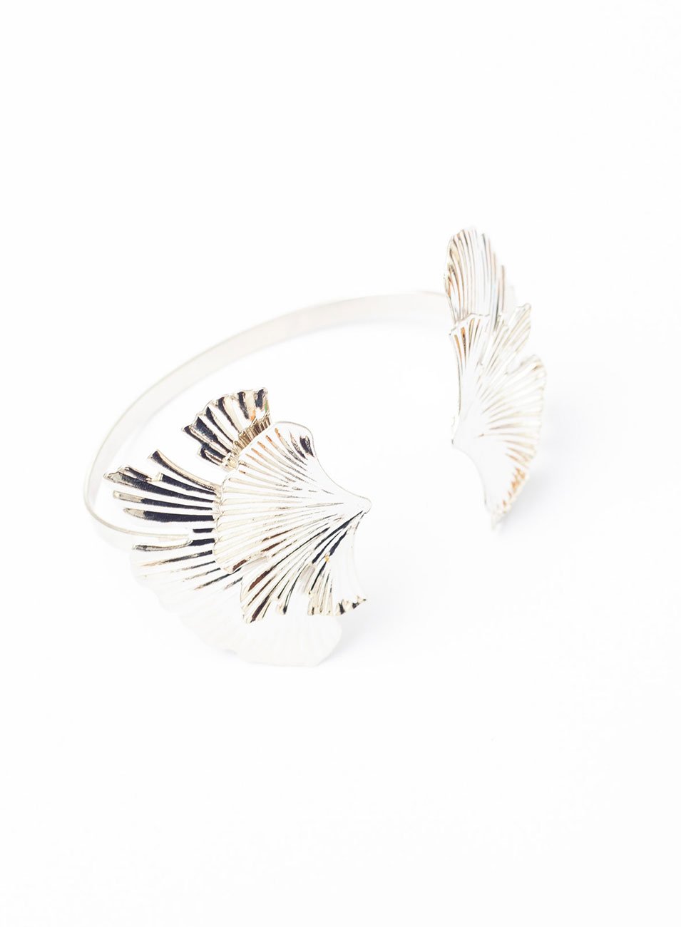 BRACELETE LEQUE DUPLO METAL BANHO RÓDIO BRANCO