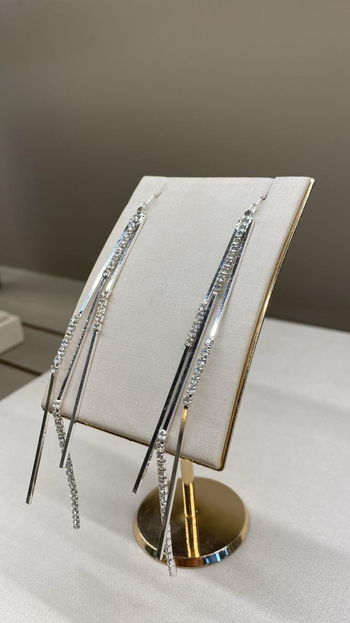 BRINCO ANNA FRANJA ZIRCÔNIA BANHO RÓDIO BRANCO