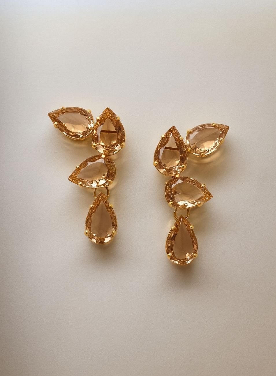 Formado por quatro cristais em formato de gota, distribuídos de maneira fluida ao longo da orelha, o modelo cria um efeito elegante e contemporâneo sem a necessidade de pressão.