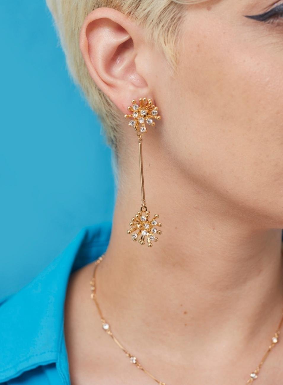 Com 6 cm de comprimento e banho de ouro, este design elegante é perfeito para iluminar produções modernas, criando um visual marcante e extremamente feminino.