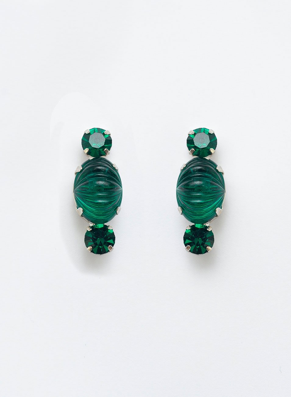 BRINCOS CHARLOTTE CRISTAL OVAL VERDE BANHO RÓDIO BRANCO