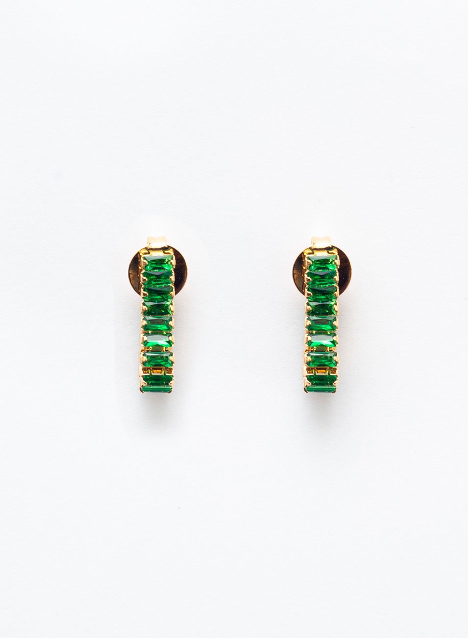 BRINCOS DIZOU RIVIERA BAGUETE VERDE ESCURO BANHO OURO