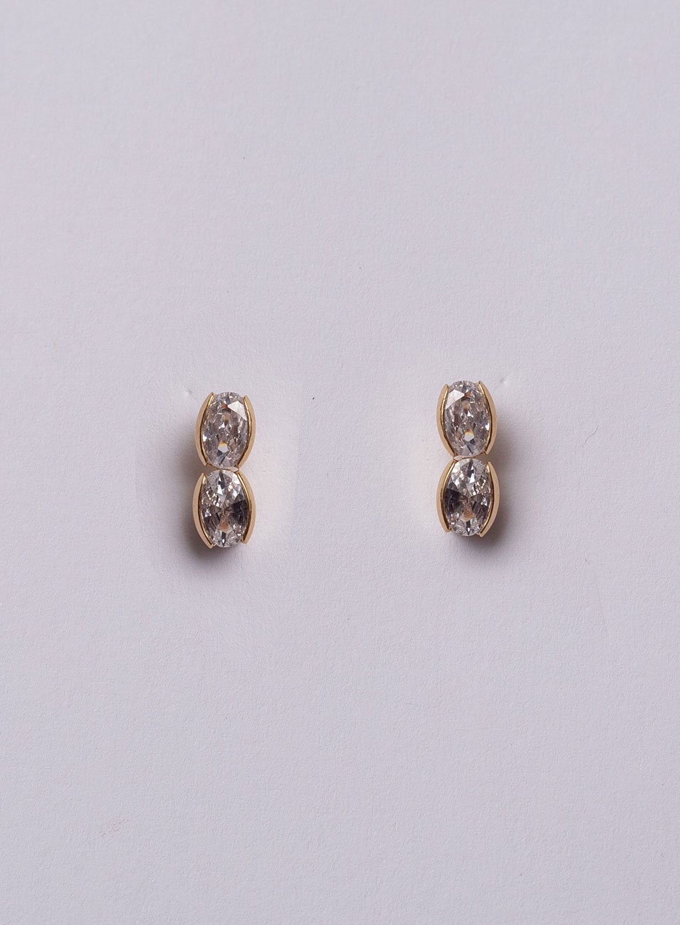 Compostos por duas zircônias ovais alinhadas verticalmente, o design cria um ponto de luz delicado e sofisticado, que valoriza o rosto com naturalidade. A cravação inglesa envolve cada pedra com precisão, destacando o brilho e garantindo segurança no uso.