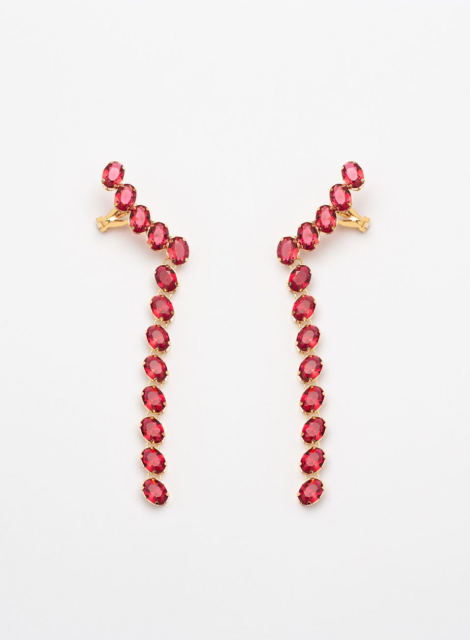 BRINCOS EARCUFFS ENCANTOS CRISTAIS OVAIS ROSA ESCURO BANHO OURO