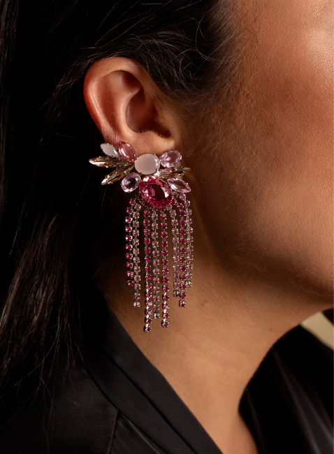 Os Brincos Ear Cuffs Franja são a escolha perfeita para quem deseja brilhar em grandes ocasiões. Com um design de franja elegante, adornado por strass e mix de cristais rosa, esses brincos adicionam um toque sofisticado e moderno ao visual. O banho em ródio branco garante brilho e durabilidade, tornando-os ideais para eventos especiais, festas ou momentos que exigem um acessório marcante.