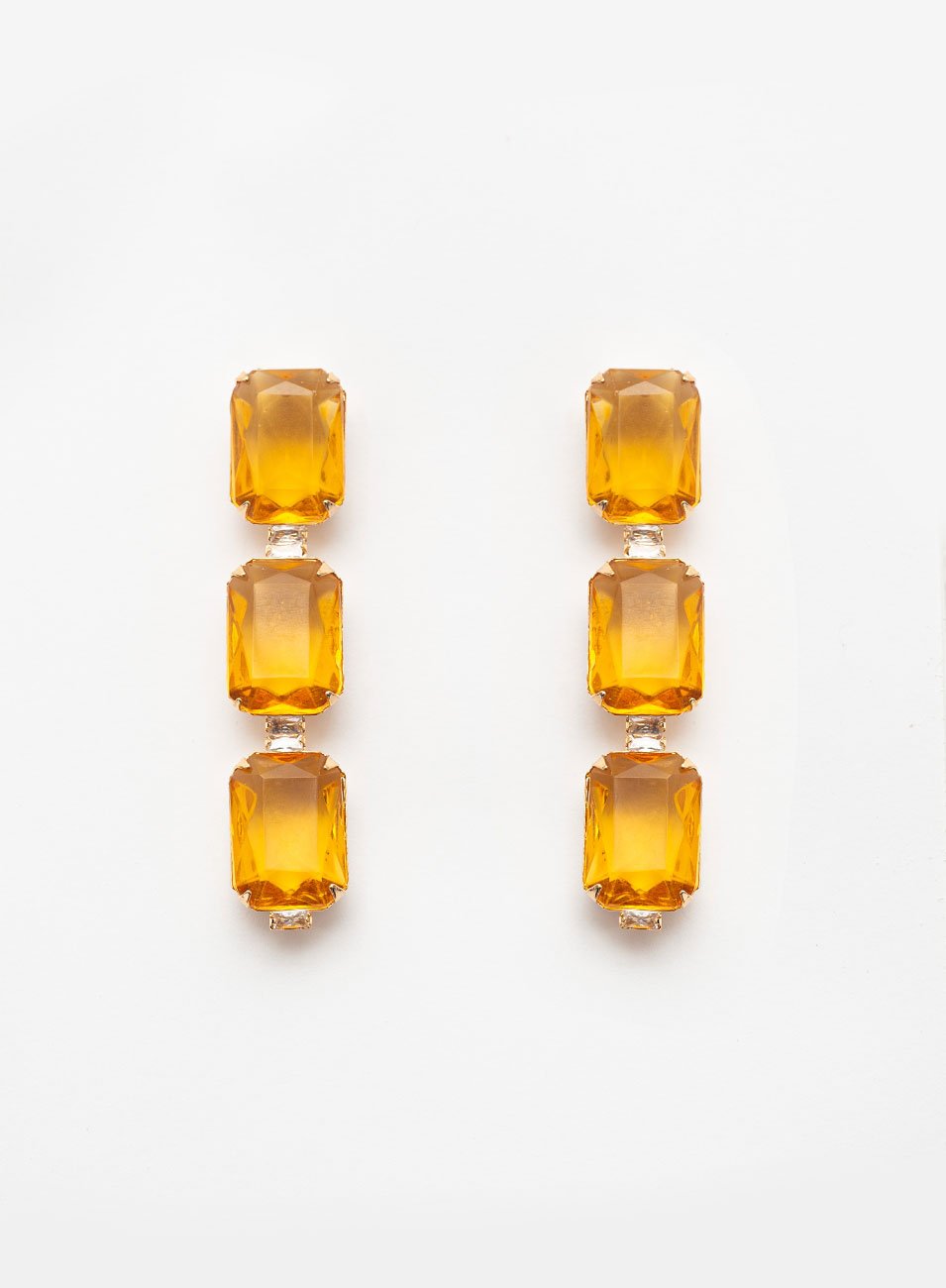 BRINCOS ENTALHE PÊNDULO CRISTAL CITRINO BANHO OURO