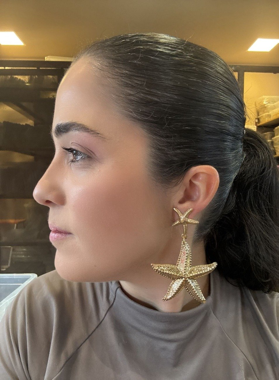 Os BRINCOS ESTRELA DO MAR capturam a poesia do oceano em um design autoral que combina textura, leveza e brilho.