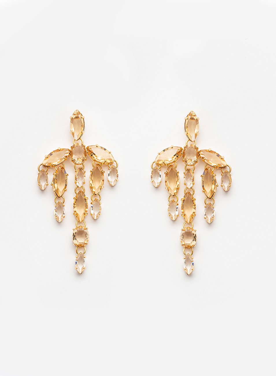 Os brincos Harmonia são uma verdadeira declaração de estilo. Com base em arco levemente curvado e inteiramente cravejada de cristais champanhe, a peça traz um visual sofisticado e moderno. Abaixo da base, uma composição de cristais pendurados em diferentes alturas forma uma delicada franja, que acompanha o movimento do corpo com leveza e brilho. A tonalidade champanhe dos cristais, combinada ao banho de ouro, cria uma paleta quente e refinada, ideal para ocasiões especiais ou para dar destaque a produções elegantes. Um brinco marcante, com presença e leveza na medida certa.