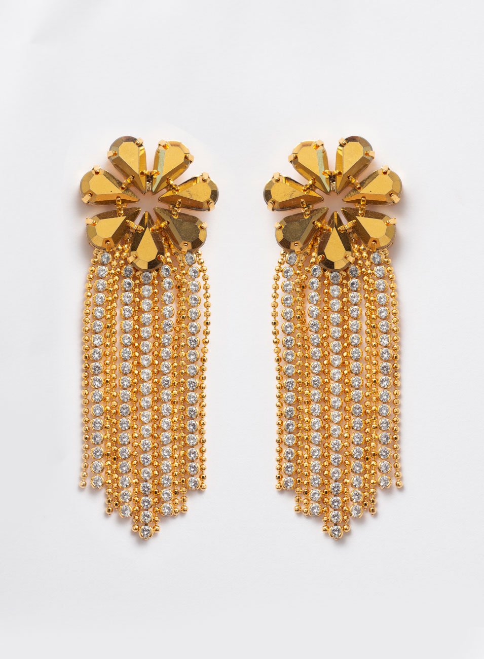 Decorados com uma composição de cristais furtacor, que se unem em um gracioso formato de flor, esses brincos destacam-se pela sua delicadeza e pela exuberância das cores que refletem a luz de forma encantadora. Além disso, apresentam uma elegante franja de cristais e bolinhas que adiciona movimento e sofisticação ao design.