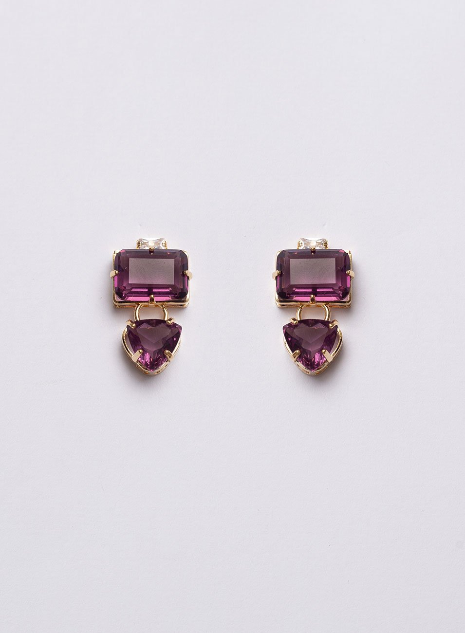 BRINCOS LIMIA CRISTAIS ROXO BANHO OURO