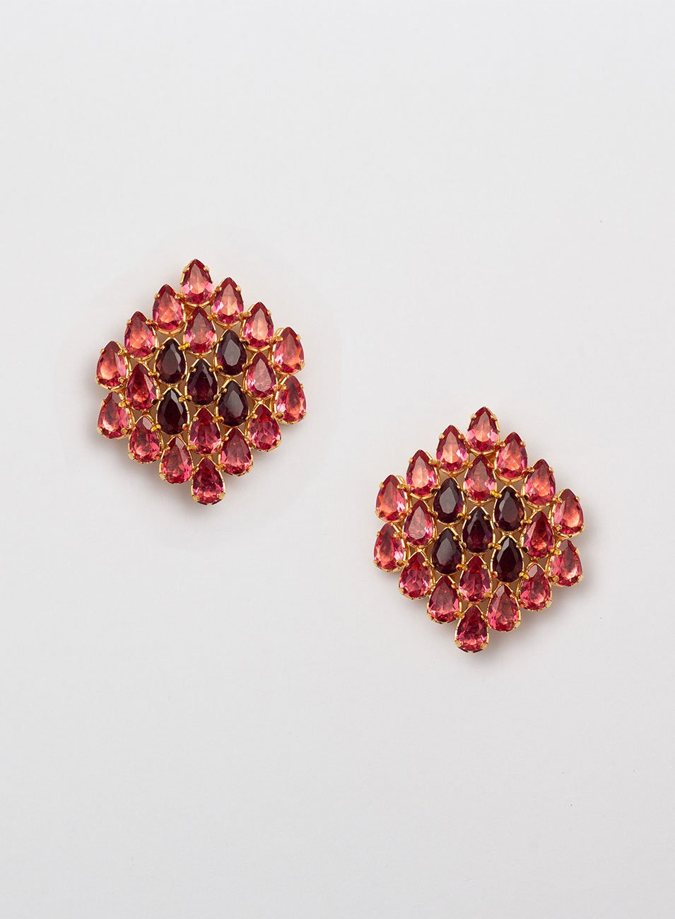 BRINCOS LINEAR CRISTAIS GOTA ROSA / AMETISTA COM BANHO OURO
