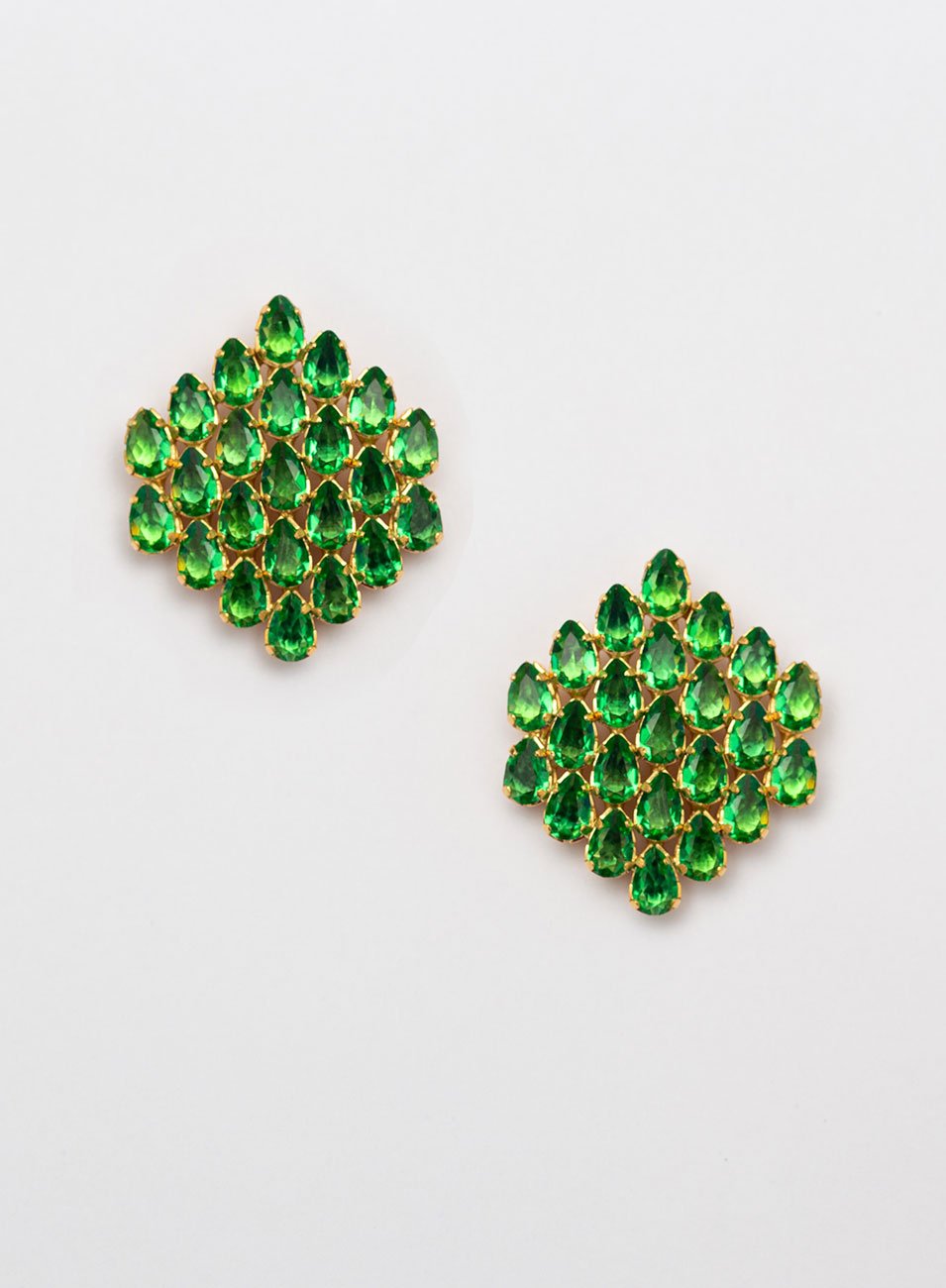 BRINCOS LINEAR CRISTAIS GOTA VERDE COM BANHO OURO