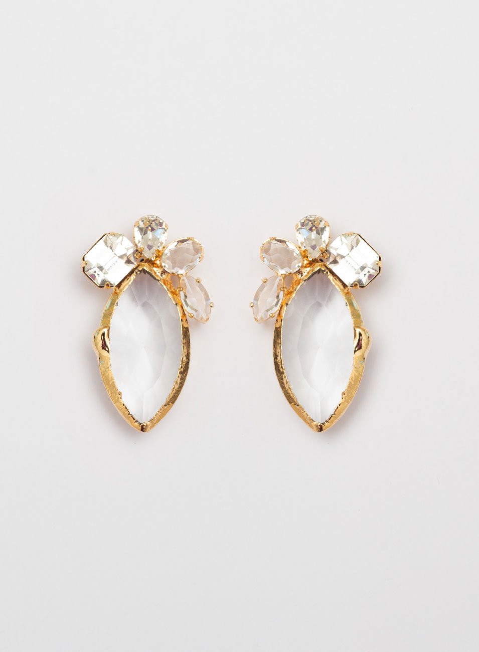BRINCOS LUX CRISTAIS INCOLOR BANHO OURO
