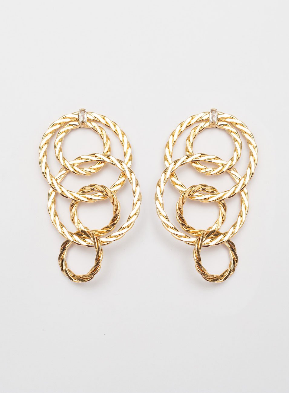 BRINCOS RADIX CÍRCULOS TRANÇADO COM ZIRCONIA COM BANHO OURO
