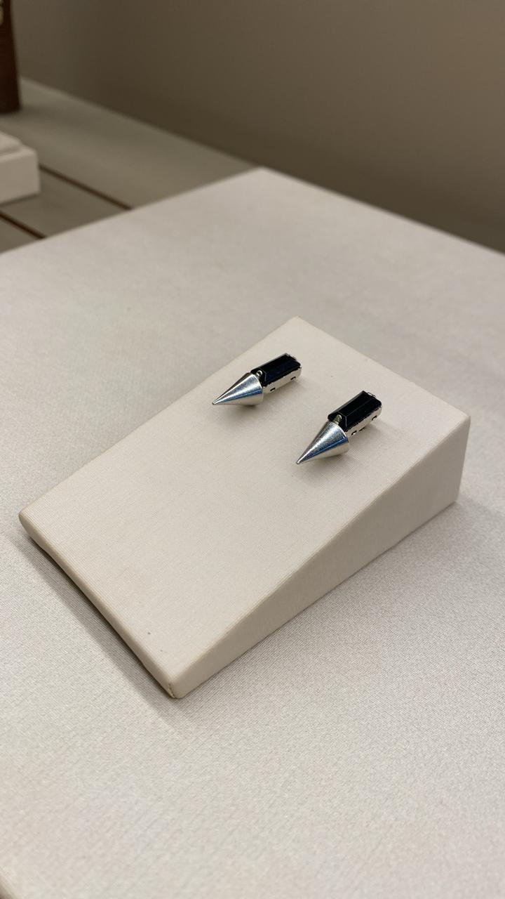 BRINCOS SPIKE PRETO BANHO RÓDIO BRANCO