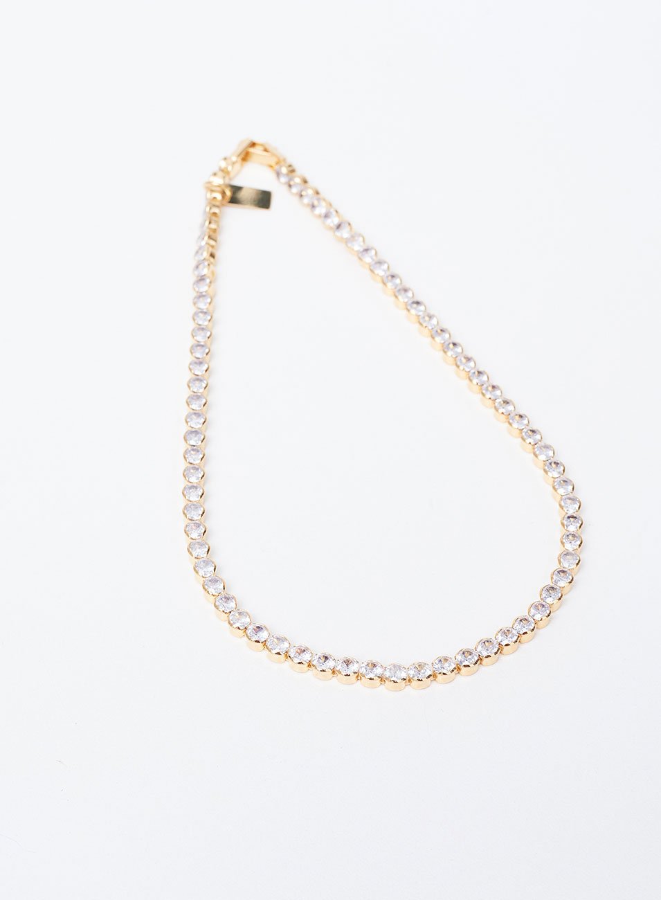 A Choker Nancy é produzida por corrente riviera portuguesa, feita de metal nobre, decorada com cristais incolores por todo o seu corpo banhado a ouro.