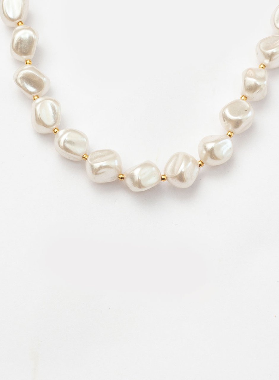 O destaque deste colar são as pérolas irregulares, que adicionam uma dose extra de charme e originalidade à peça. Cada pérola é cuidadosamente selecionada e disposta de forma a criar um visual único e elegante.