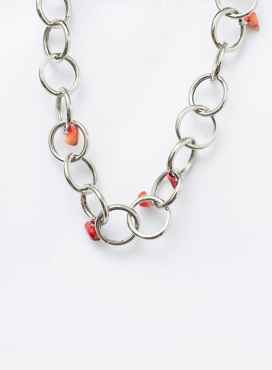 Material: Corrente de elos redondos decorados com pedrinhas de cascalho vermelho