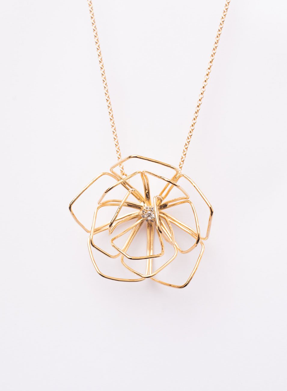 Colar Petalina Flor de Lótus 3D Zircônia | Banho de Ouro
