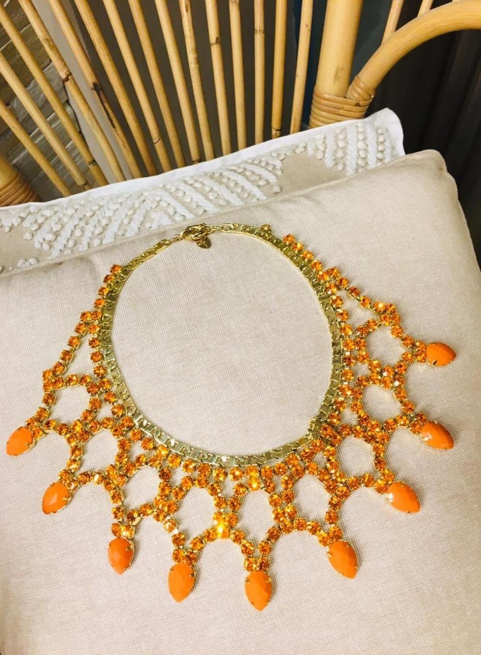 COLAR QUEEN BANHO OURO CRISTAIS GRANDES E GOTAS LARANJA : 207 / : 0g Facebook X Pinterest WhatsApp : - + : OK × : 1x R$ 28,11 : R$ 28,11 ×