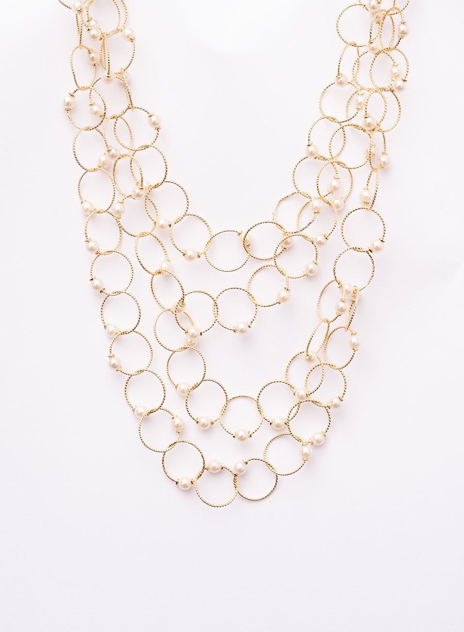 No coração do Jardim Secreto, flores de lótus se entrelaçam em perfeita harmonia, formando este colar triplo que irradia delicadeza e sofisticação. Cada elo é cuidadosamente revestido de pérolas, lembrando gotas de orvalho sobre pétalas ao amanhecer, enquanto o banho de ouro aquece e ilumina toda a peça, criando um brilho suave e elegante. A composição tripla proporciona movimento e profundidade, tornando o colar uma joia versátil, capaz de transformar qualquer look com seu charme natural e místico.