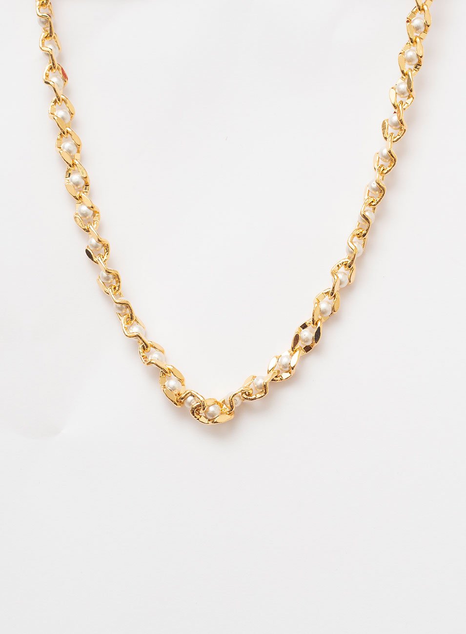Transporte-se para uma aura de elegância clássica com o deslumbrante Colar Valença. Cada elo desta corrente curta é habilmente enfeitado com uma pérola, criando uma harmonia entre o charme moderno e o luxo atemporal.