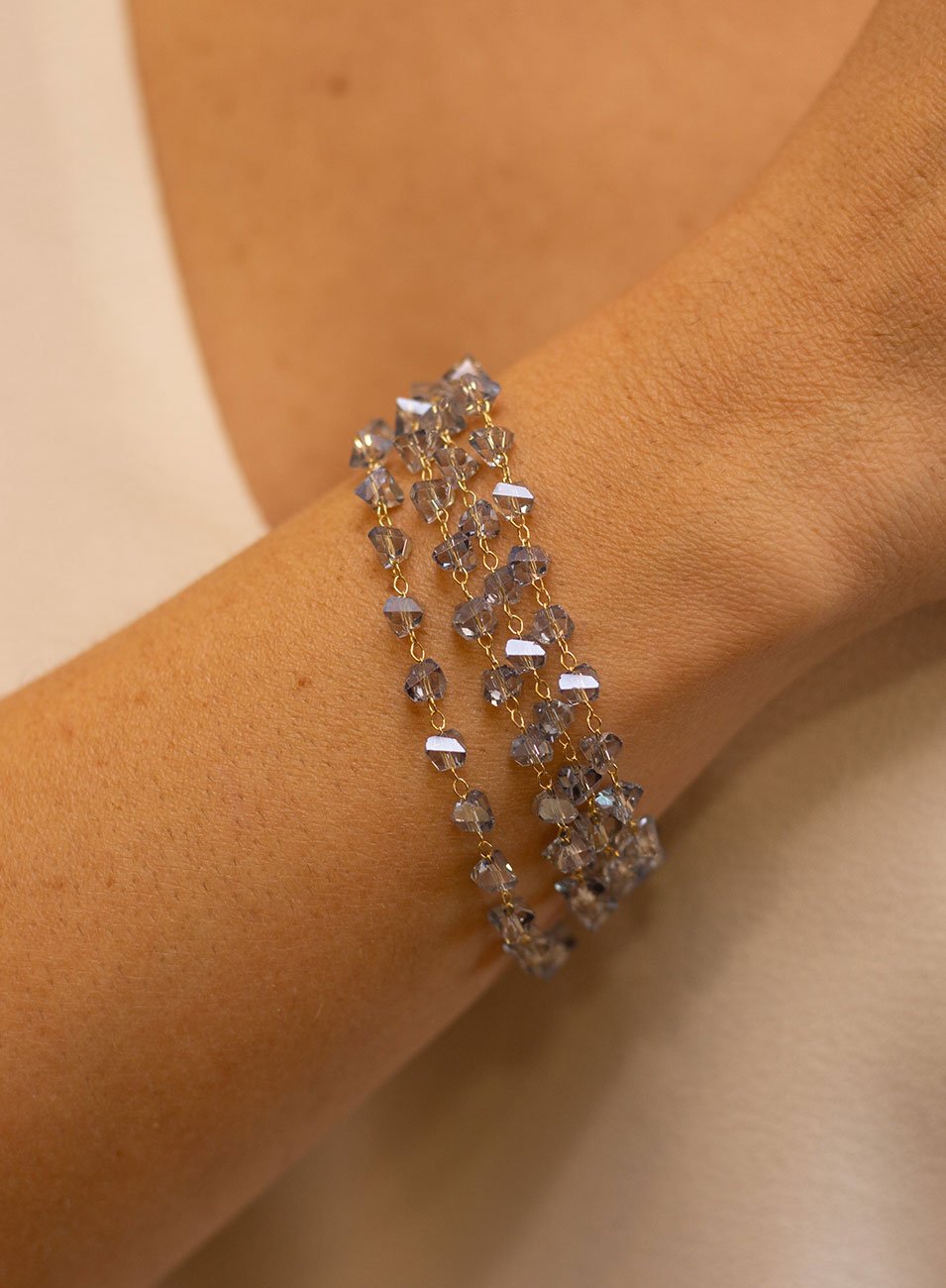Confeccionada com resinas facetadas em tom azul, a pulseira reflete a luz de forma intensa e elegante, criando um efeito luminoso contínuo ao redor do pulso. As facetas garantem um brilho excepcional, enquanto a composição em resina torna a peça extremamente leve e confortável para o uso diário ou ocasiões especiais.