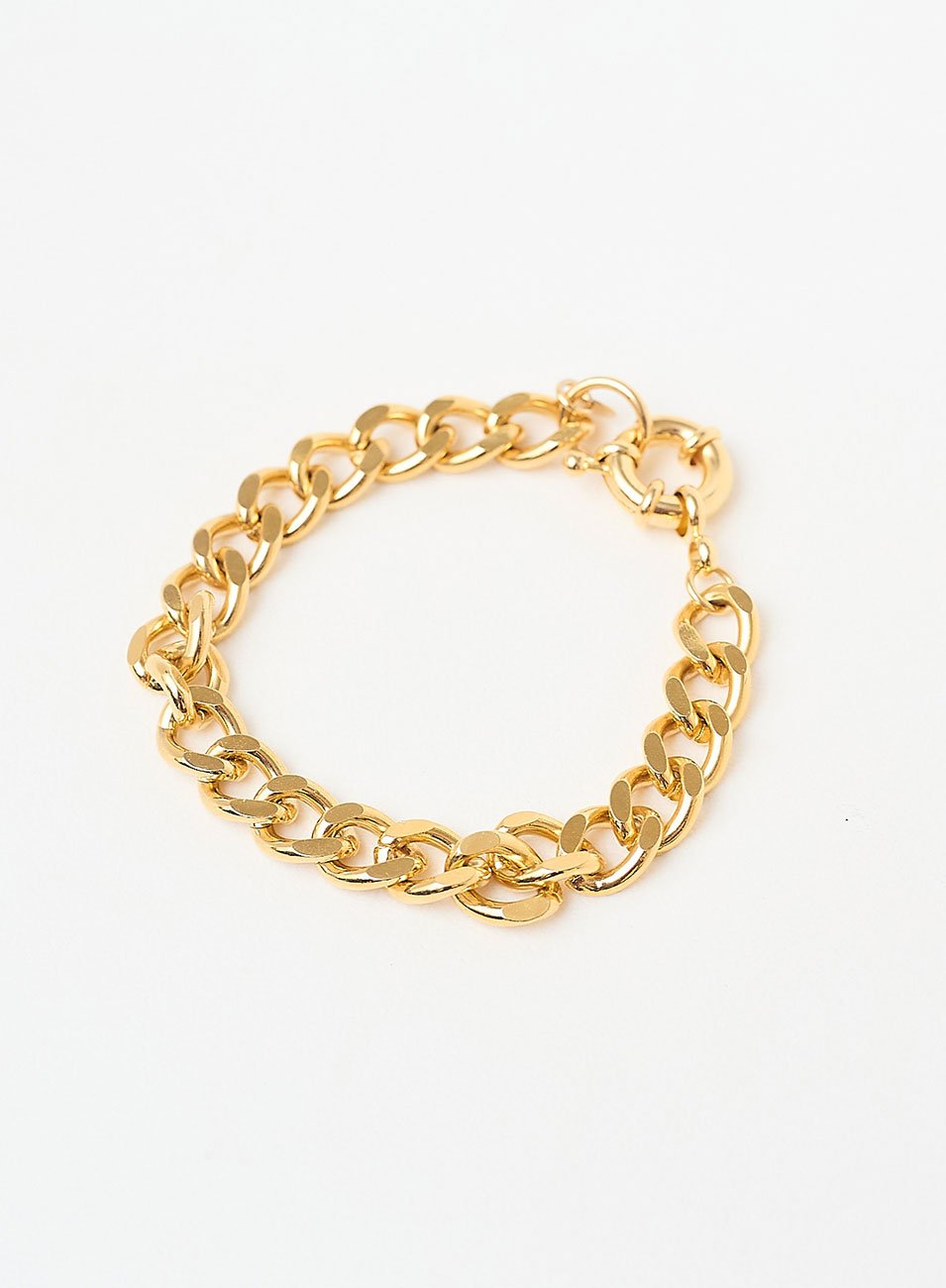 O design robusto da corrente grossa torna essa pulseira uma escolha ousada e elegante. Seu tamanho de 18 cm proporciona um ajuste confortável ao pulso, adicionando uma presença marcante à sua coleção de joias.