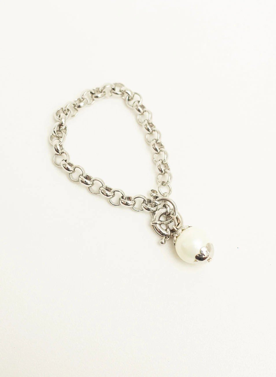 PULSEIRA MADONA G PINGENTE PÉROLA BANHO RÓDIO BRANCO