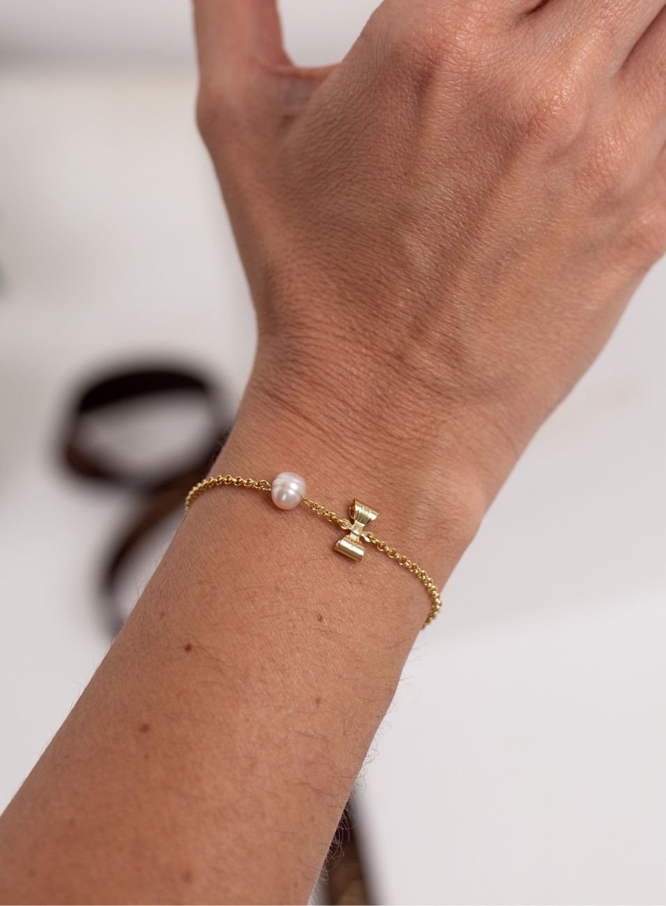 A PULSEIRA PÉROLAÇO traduz a delicadeza encantadora da Linha Lacinho — uma coleção inspirada no gesto feminino, suave e simbólico de amarrar algo com carinho.